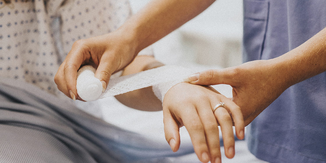 Fixador externo (uma estrutura estabilizante colocada do lado externo do corpo para segurar os ossos na posição correta para que possam consolidar);